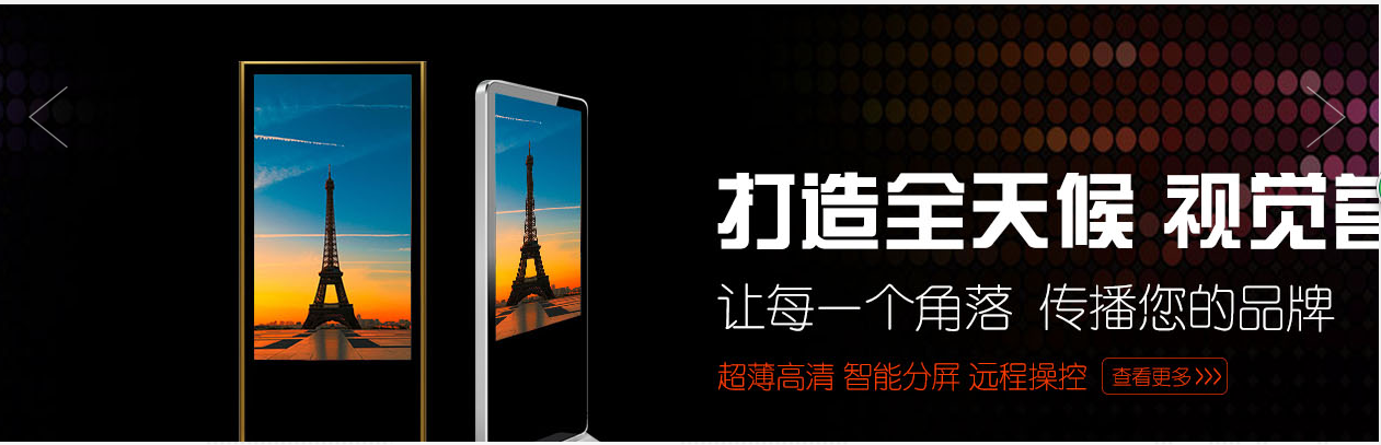 從液晶廣告機到網(wǎng)絡(luò)廣告機;從室內(nèi)廣告機到戶外廣告機;從純播放式廣告機到互動式廣告機。廣告機的發(fā)展一直平步青云,中國廣告機行業(yè)的發(fā)展也越來越精細化,精品化。一家企業(yè)可能專精于飛機場廣告機,或者地鐵站廣告機,或者公交站牌廣告機的制作。然而。九個孩子一個媽,可別忘了,我們都是屬于廣告機大家族的哦!而廣告機系列,則是廣告機的根本發(fā)源。不過,受源技術(shù)非國有的限制,廣告機行業(yè)原料技術(shù)上的發(fā)展以及質(zhì)量上的發(fā)展進入了瓶頸階段。大部分廣告機廠家選擇暫時放下廣告機的源技術(shù)開發(fā),轉(zhuǎn)而走向內(nèi)容設(shè)計,這點小編以后會詳細談到。不過小編還是很期望我國能有自己優(yōu)秀的原材料技術(shù)的,那對于廣告機行業(yè)的感覺,定是不亞于第一顆原子彈的自豪感吧。