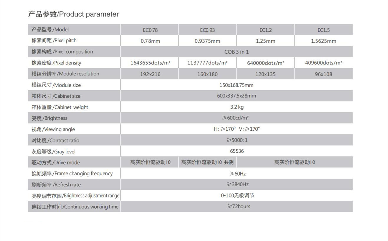點(diǎn)間距: 0.78mm 0.9375mm 1.25mm 1.56mm